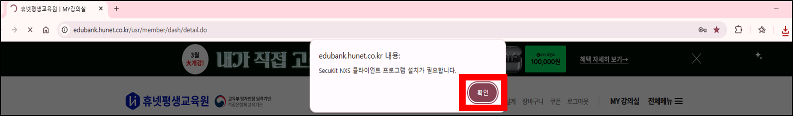 위 방법으로도 해결되지 않을 경우 교육원으로 문의해 주시면 확인 후 도움드리겠습니다. (1600-9005)